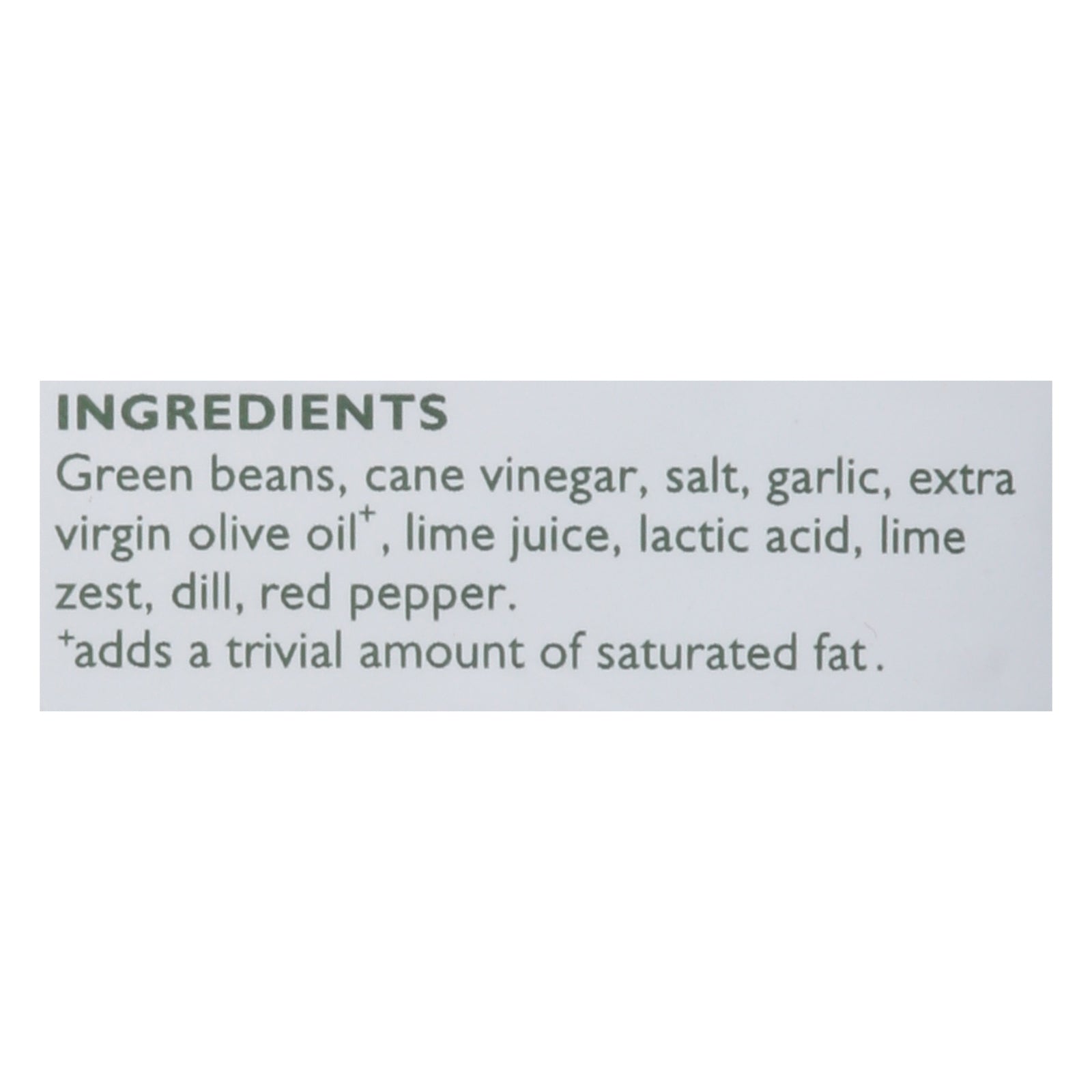 ingredients : french green beans (from fresh produce);distilled vinegar;sea salt;ascorbic acid;calcium chloride