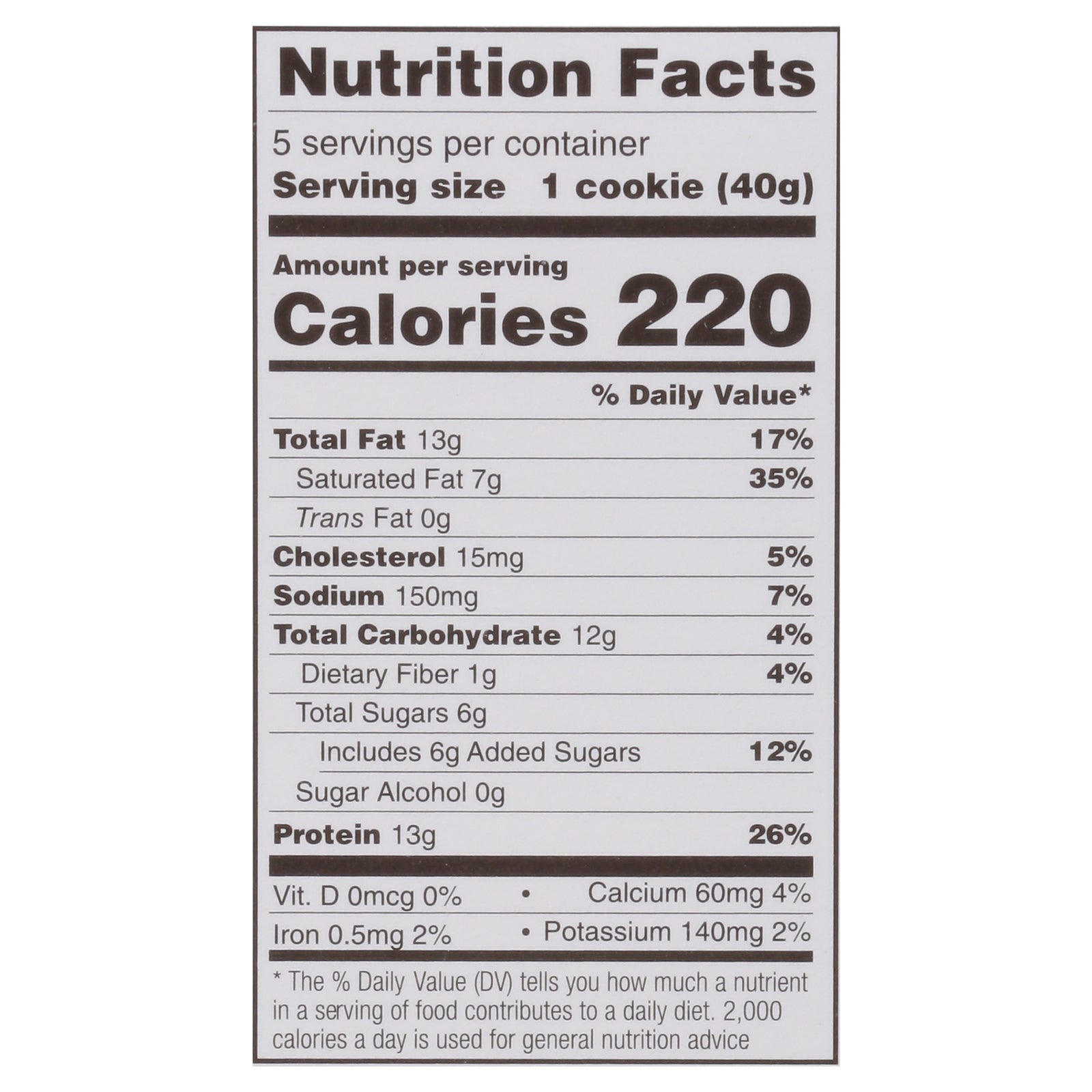 ingredients : proto whey protein blend (micro peptides from high-dh hydrolyzed whey protein, whey protein isolate, milk protein isolate);peanut butter (peanuts, palm oil, salt);palm oil;enriched flour (wheat flour, malted barley flour, niacin, reduced iron, thiamine mononitrate, riboflavin, folic acid);sugar;palm kernel oil;fructose;maltodextrin;natural flavors;soy lecithin;salt;stevia leaf extract;baking soda;ammonium bicarbonate