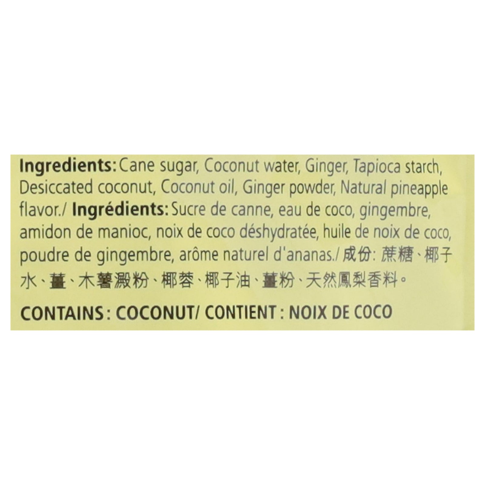 ingredients : cane sugar;coconut water;ginger;tapioca starch;desiccated coconut;coconut oil;ginger powder;natural pineapple flavor