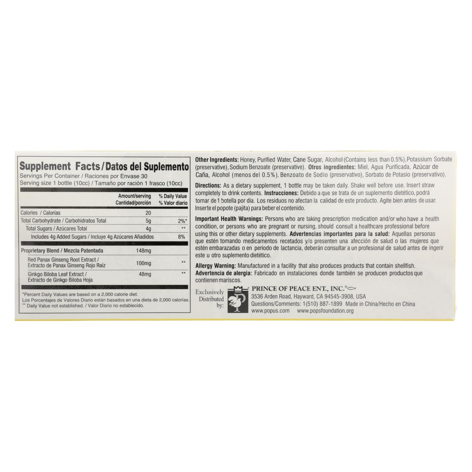 Prince of peace ginkgo biloba & red panax ginseng extract oral liquid dietary supplement promotes natural energy and optimal immunity in your body. This special formulation contains highly refined ginkgo biloba and red panax ginseng extract sourced from china's changbai mountain. This box contains 30 easy-to-sip 0.34 fl. Oz. Bottles of liquid extract.
