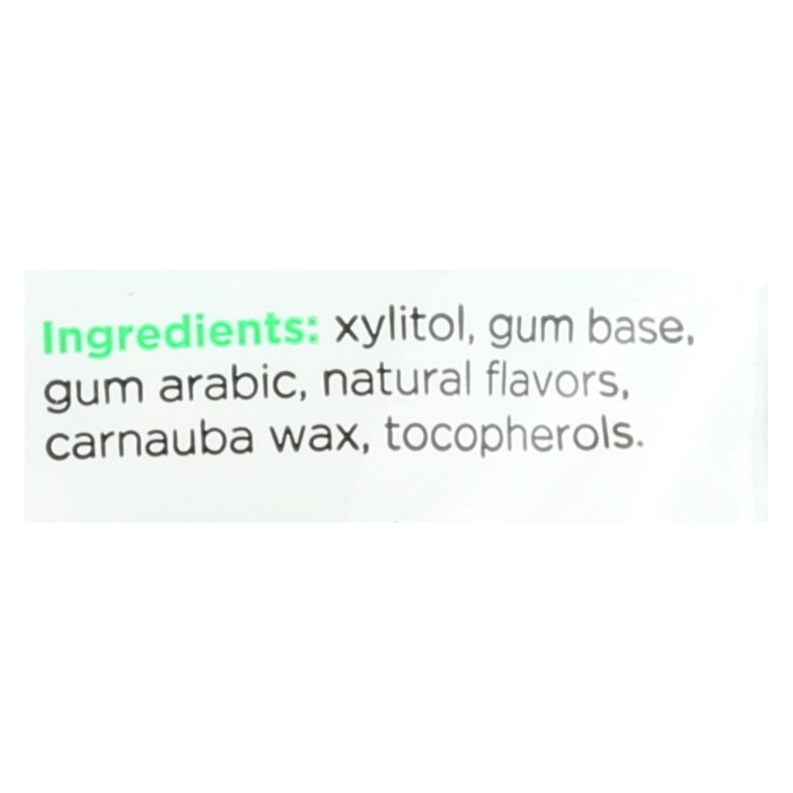 ingredients : xylitol;gum base;gum arabic;natural flavors;carnauba wax;tocopherols