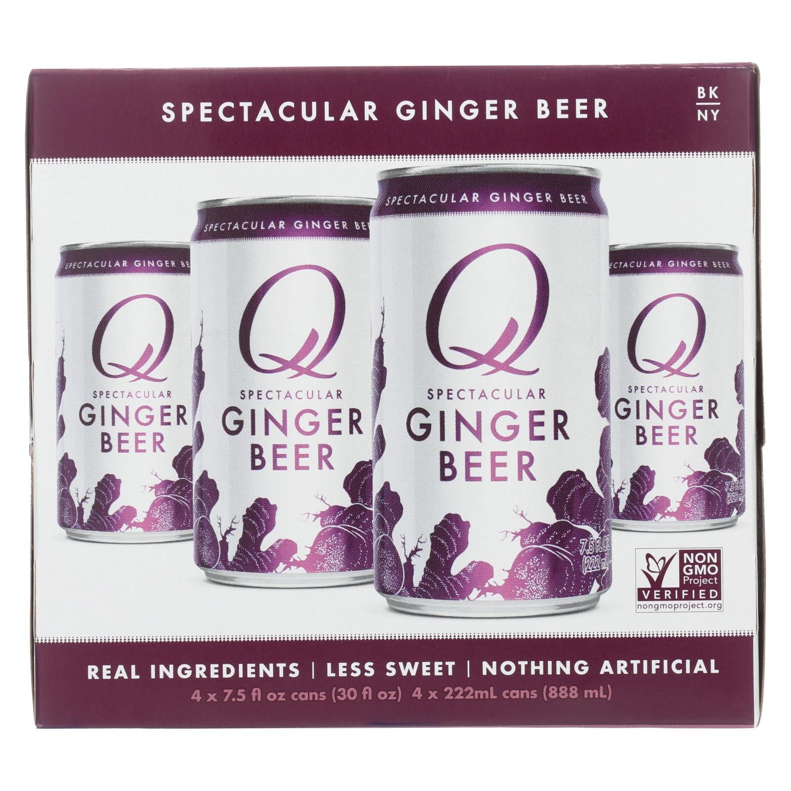 Q drinks, ginger beer has a big ginger punch and lots of carbonation, but none of the syrupy sweetness most ginger beers have. In trying to be both a spicy soda and a mixer, most end up doing neither well. Q drinks made their ginger beer to be a mixer and a mixer only, so it's spicier and less sweet than other ginger beers. Each can of q drinks, ginger beer is made with real ingredients like ginger root, agave, chili peppers, lime, cardamom and coriander. See nutrition facts panel for allergens and any warnings. Great spirits deserve spectacular ginger beer.