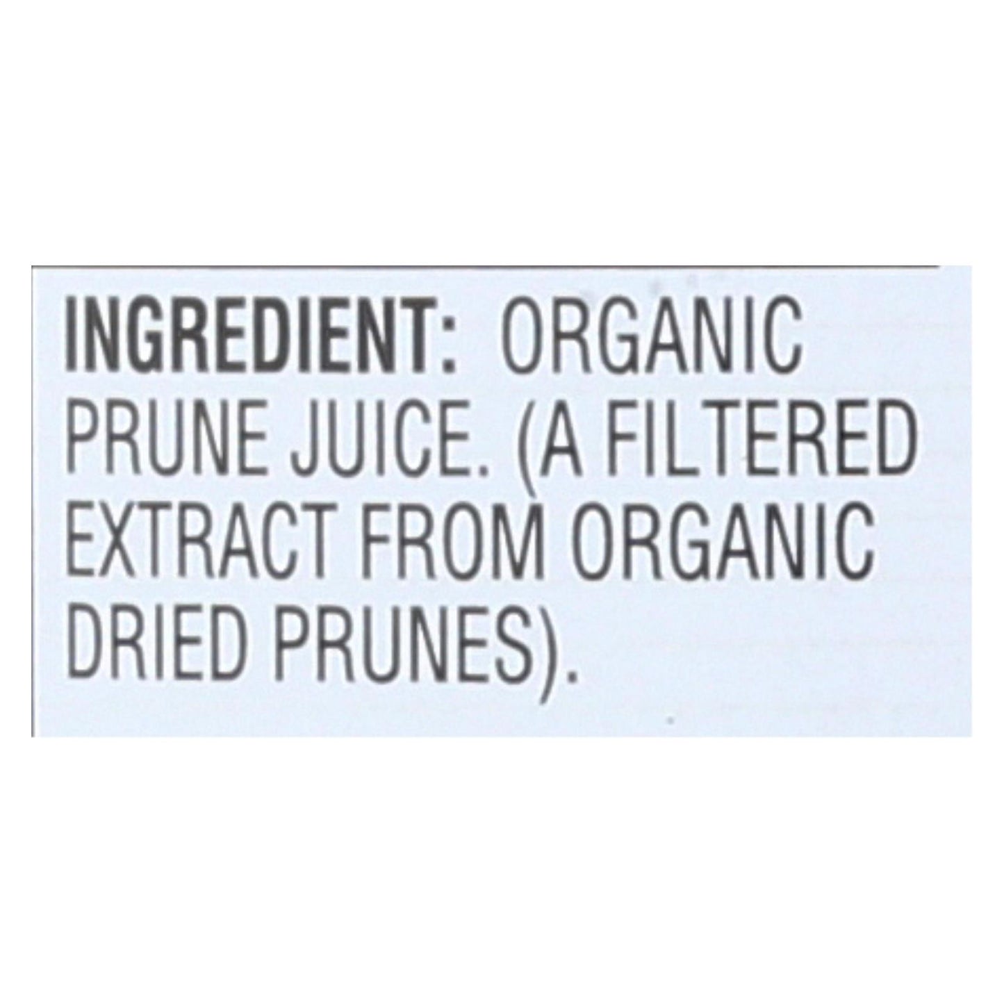 Rw knudsen's organic prune juice is made from 100% prune concentrate. It's all-natural, so there are no preservatives or artificial colors. Every 32 fl. Oz. Bottle is unsweetened, non-gmo certified and pastuerized for your safety. Each cup of juice is equivalent to one serving of fruit. See nutrition facts panel for allergens.