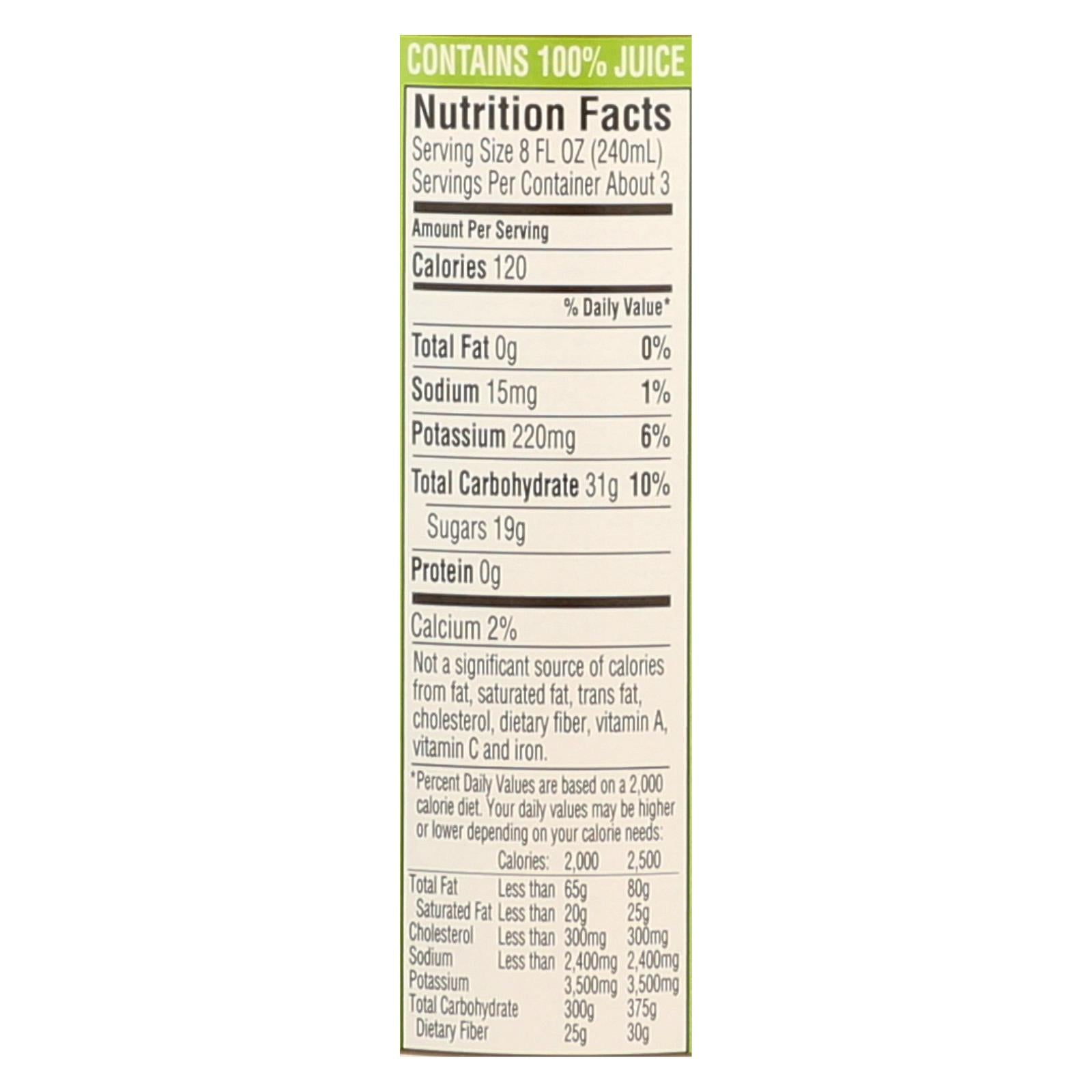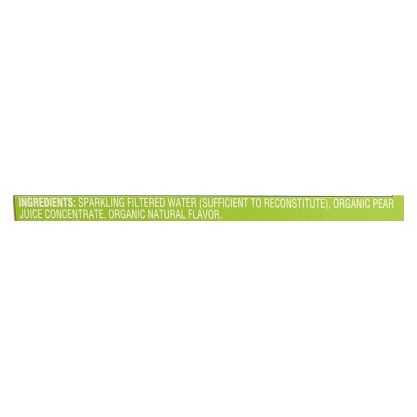 Rw knudsen sparkling organic pear juice is a refreshing, pear-flavored beverage that is made without any preservatives or gmos. Every 25.4 fl. Oz. Bottle contains simple ingredients such as organic flavors, organic pear juice and sparkling water. Each serving contains 120 calories, 19 g. Of sugar and 0 g. Of fat.