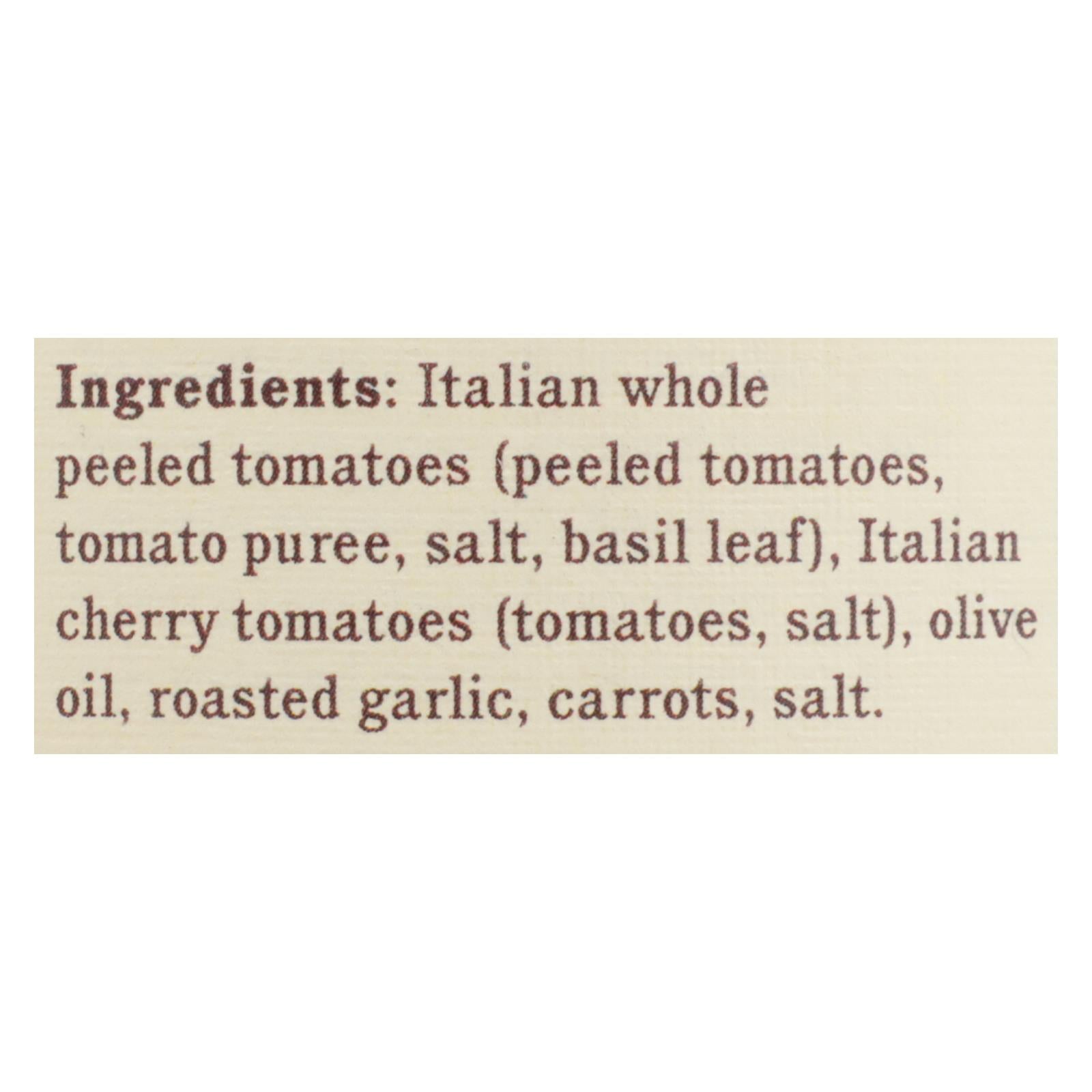ingredients : italian whole peeled tomatoes;italian cherry tomatoes;olive oil;roasted garlic;carrots;salt