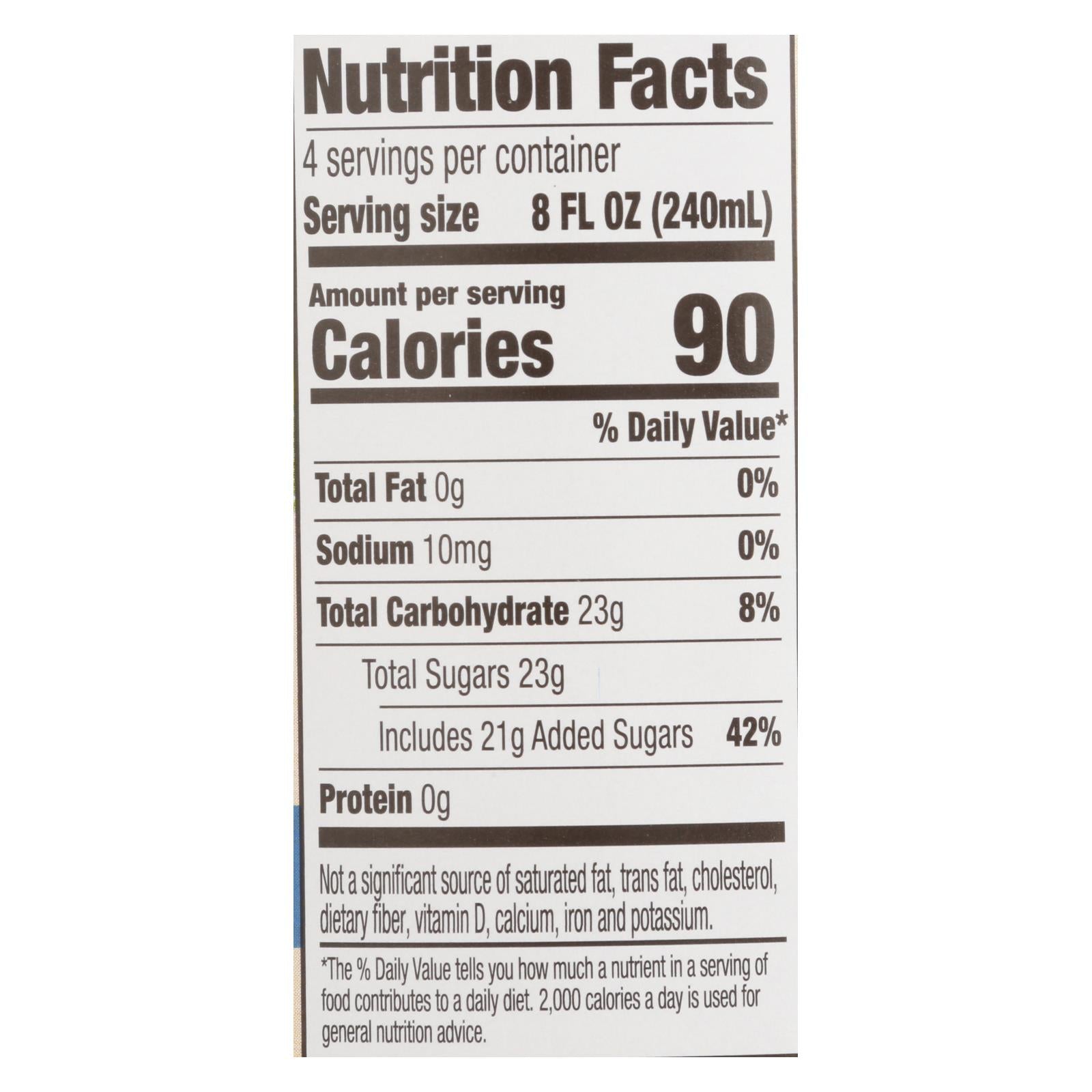 Lemon and blueberry flavored beverage from concentrate. 90 calories per 8 fl oz. Usda organic. Certified organic by quality assurance international. Gluten free. Non gmo project verified. Nongmoproject.org. Our passion for nature: we love nature and believe it's the trust form of art. Because of that, we are committed to being sustainable, responsible, and keeping our planet remarkable. This is part of everything we do - from diverting more than 95% of our waste from landfills at our chico, ca, location, to buying enough renewable energy credits each year to cover our production needs. We're committed to long-term care for the environment, so you can enjoy some of nature's feel good in everyday moments. We take organics seriously: we have been pioneers of the organic movement since the early 1970s and remain committed to the pursuit of better. We are certified organic, meeting all usda organic requirements, and have rigorous quality standards for our growers, suppliers, and processes. It's who we are, it's what we do. And more importantly, it's what we love. Live organic. Live santa cruz. Natural separation may occur. Santacruzorganic.com.