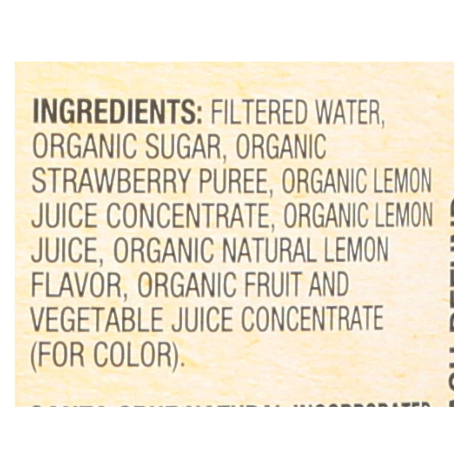 ingredients : filtered water;organic sugar;organic strawberry puree;organic lemon juice concentrate;organic lemon juice;organic natural lemon flavor;organic fruit and vegetable juice concentrate (for color)