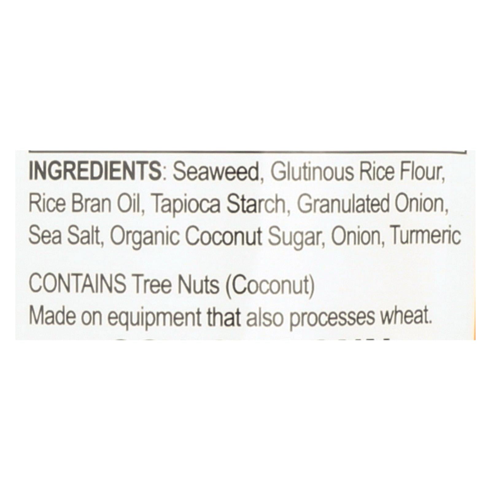 ingredients : seaweed;glutinous rice flour;rice bran oil;tapioca starch;granulated onion;sea salt;organic coconut sugar;onion;turmeric
