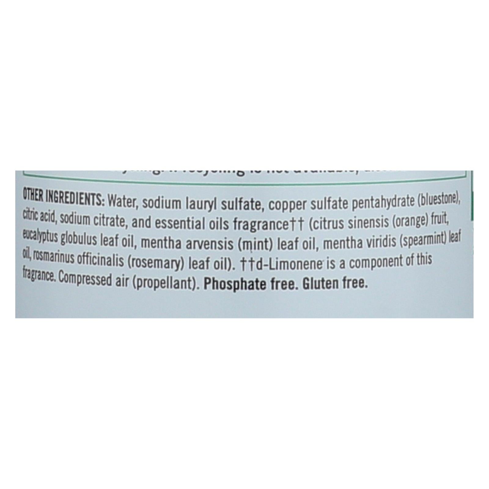 ingredients : active ingredient: thymol;present as a component of thyme oil;: 0.05% other 99.95% total: 100.00% other water;sodium lauryl sulfate;copper sulfate pentahydrate;bluestone;citric acid;sodium citrate;and essential oils fragrance††;citrus sinensis;orange;fruit;eucalyptus globulus leaf oil;mentha arvensis;mint;leaf oil;mentha viridis;spearmint;rosmarinus officinalis;rosemary