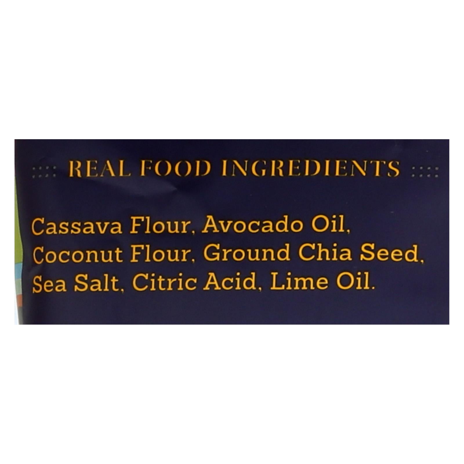 ingredients : real food cassava flour;avocado oil;coconut flour;ground chia seed;sea salt;citric acid;lime oil