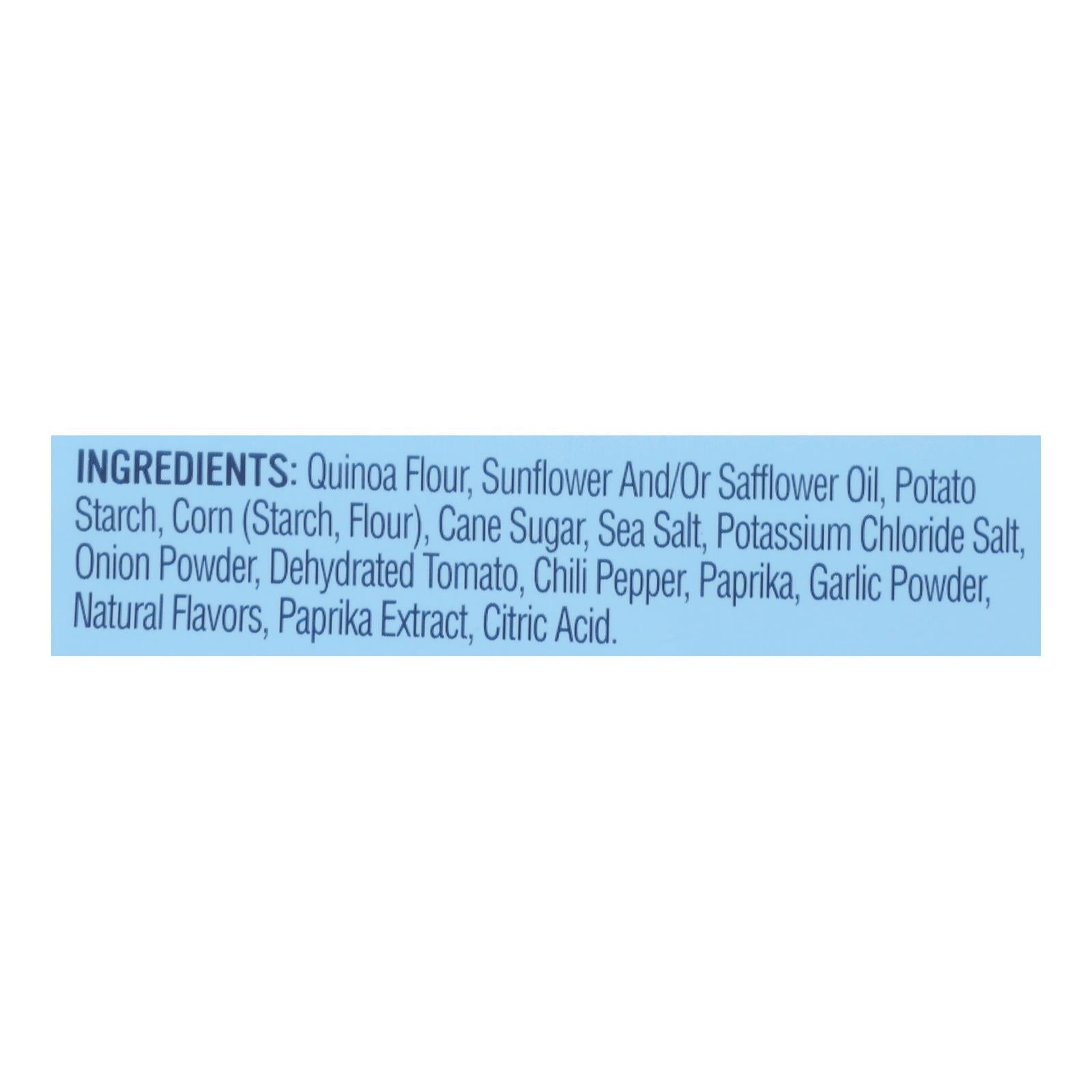 ingredients : quinoa flour;sunflower and/or safflower oil;potato starch;corn;starch;flour;cane sugar;sea salt;potassium chloride salt;onion powder;dehydrated tomato;chili pepper;paprika;garlic powder;natural flavors;paprika extract;citric acid