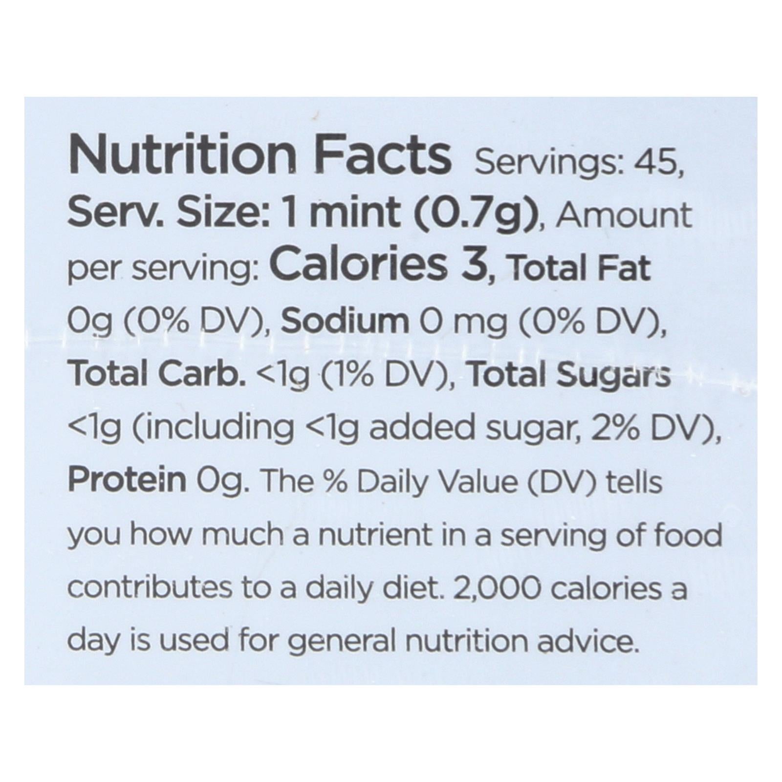 Simply gum peppermint mints are kosher-parve, so people who follow this dietary restriction can eat them. Every 1.1 oz. Tin of our mints contains around 45 single mint servings, each of which are only 3 calories each. Each mint has 0 g. Of fat and 0 mg. Of sodium, so they can easily fit into any diet.