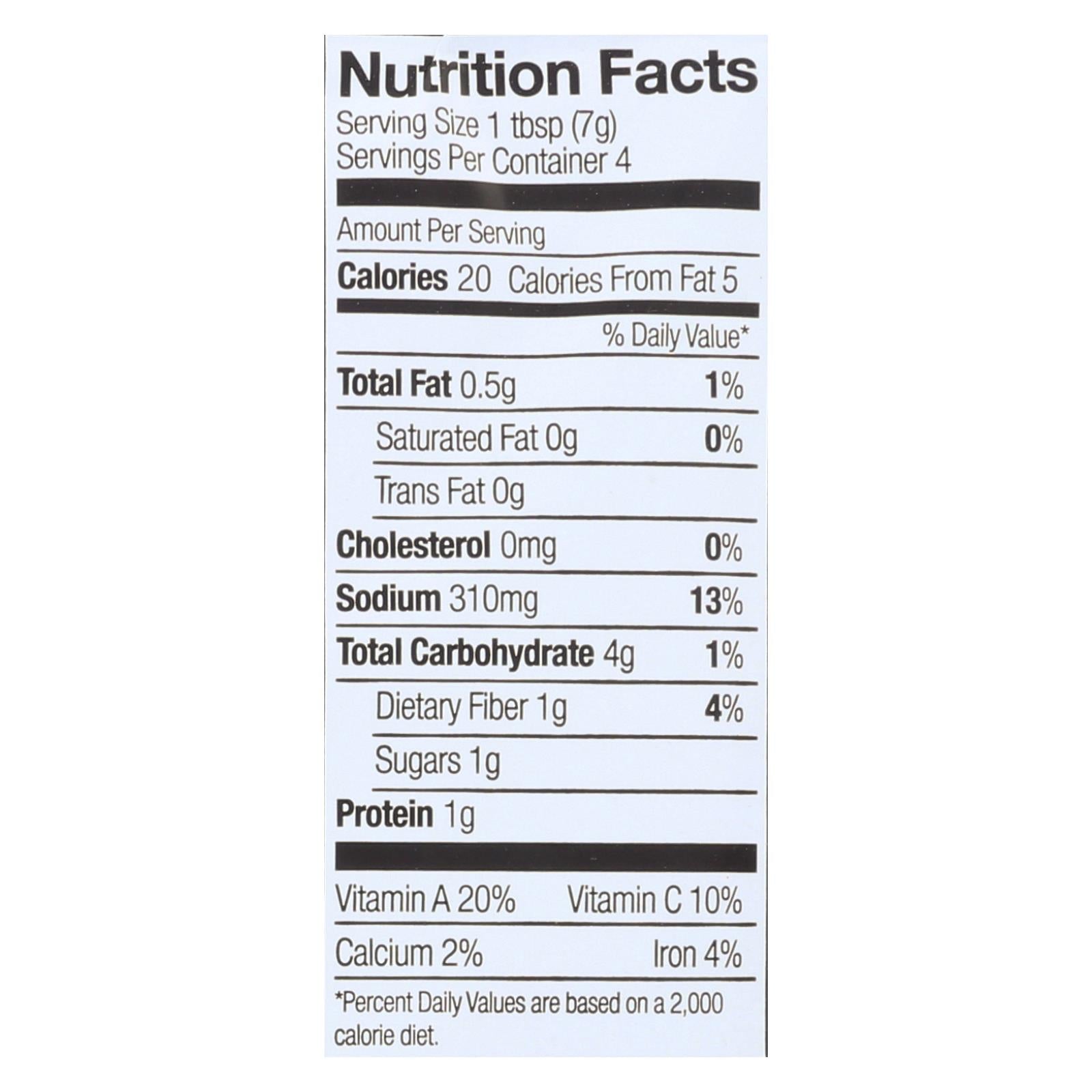 ingredients : organic chili pepper;organic paprika;organic onion;sea salt;organic garlic;organic lemon peel;organic cumin;organic potato starch;organic coriander;organic tomato powder;organic tomato concentrate;organic guar gum;organic cilantro;organic cane sugar;organic rice concentrate;organic cayenne