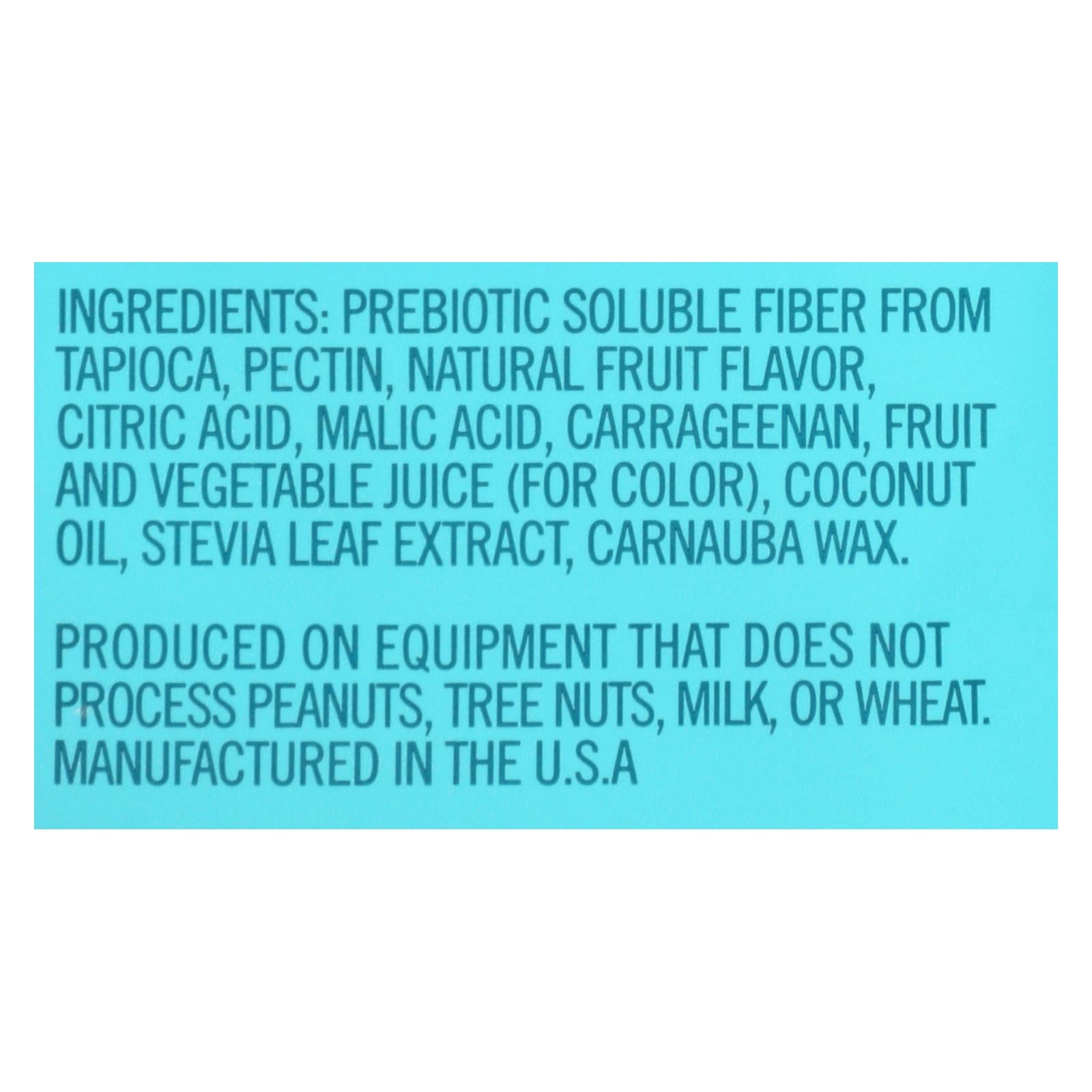 ingredients : non-gmo soluble corn fiber;allulose;isomalto-oligosaccharides (vegetable source);modified potato starch;natural berry flavor;citric acid;malic acid;fruit and vegetable juice (for color) coconut oil;carnauba wax;monk fruit extract