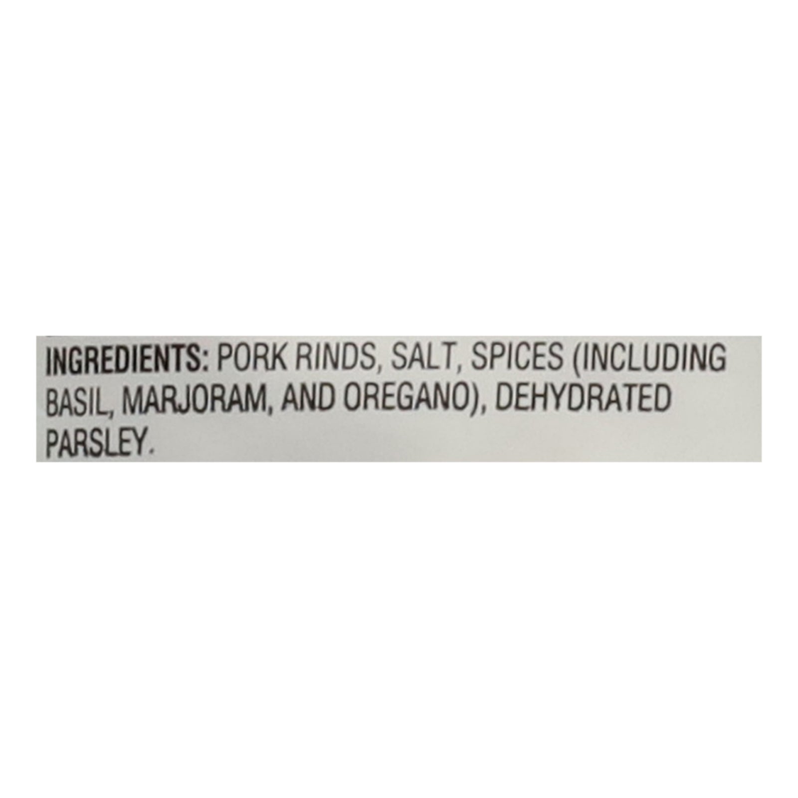 ingredients : pork rinds;salt;spices (including basil, marjoram, and oregano);dehydrated parsley