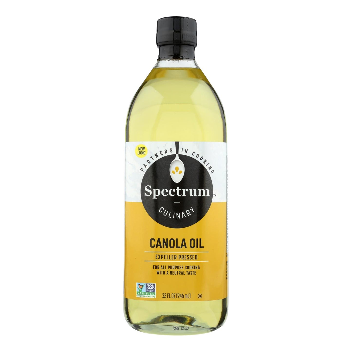 Spectrum naturals expeller pressed canola oil is perfect for high heat cooking as well as baking. Certified kosher, non-gmo, this canola oil is a non-hydrogenated fat food with a neutral flavor and a high "smoke point" that lends itself to all-purpose cooking and baking. Includes one 32 oz. Bottle of cholesterol and trans-fat free spectrum naturals expeller pressed canola oil.