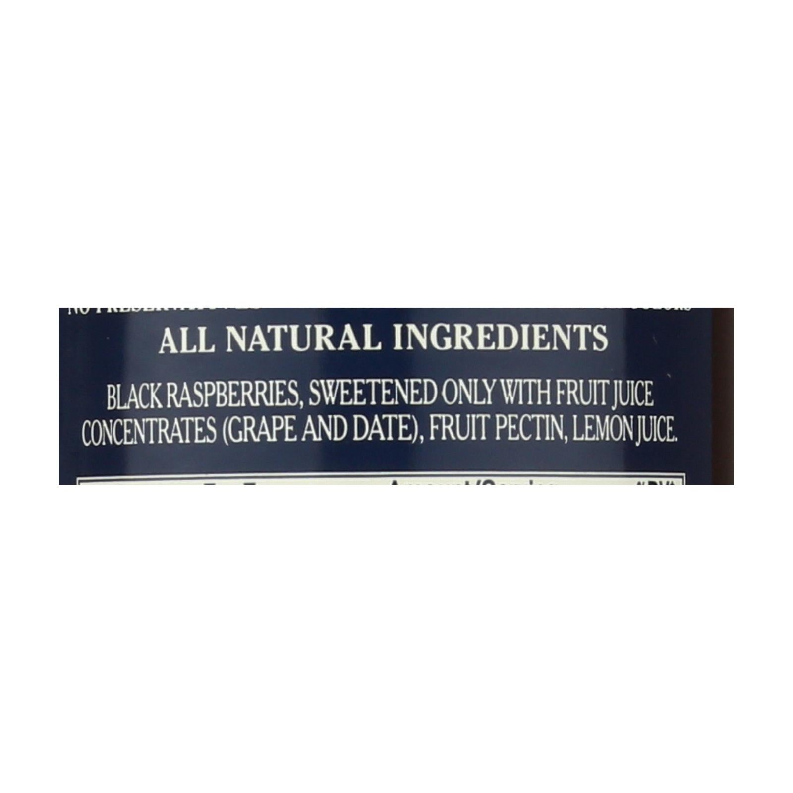 St. Dalfour black raspberry fruit spread is made with black raspberries, fruit juice concentrates, fruit pectin and lemon juice. Each 10 oz. Jar contains 15 servings of about 1 tbsp. Each. Each serving of our fruit spread has 40 calories. Our delicious fruit spread is made in france and does not contain artificial colors or flavors.