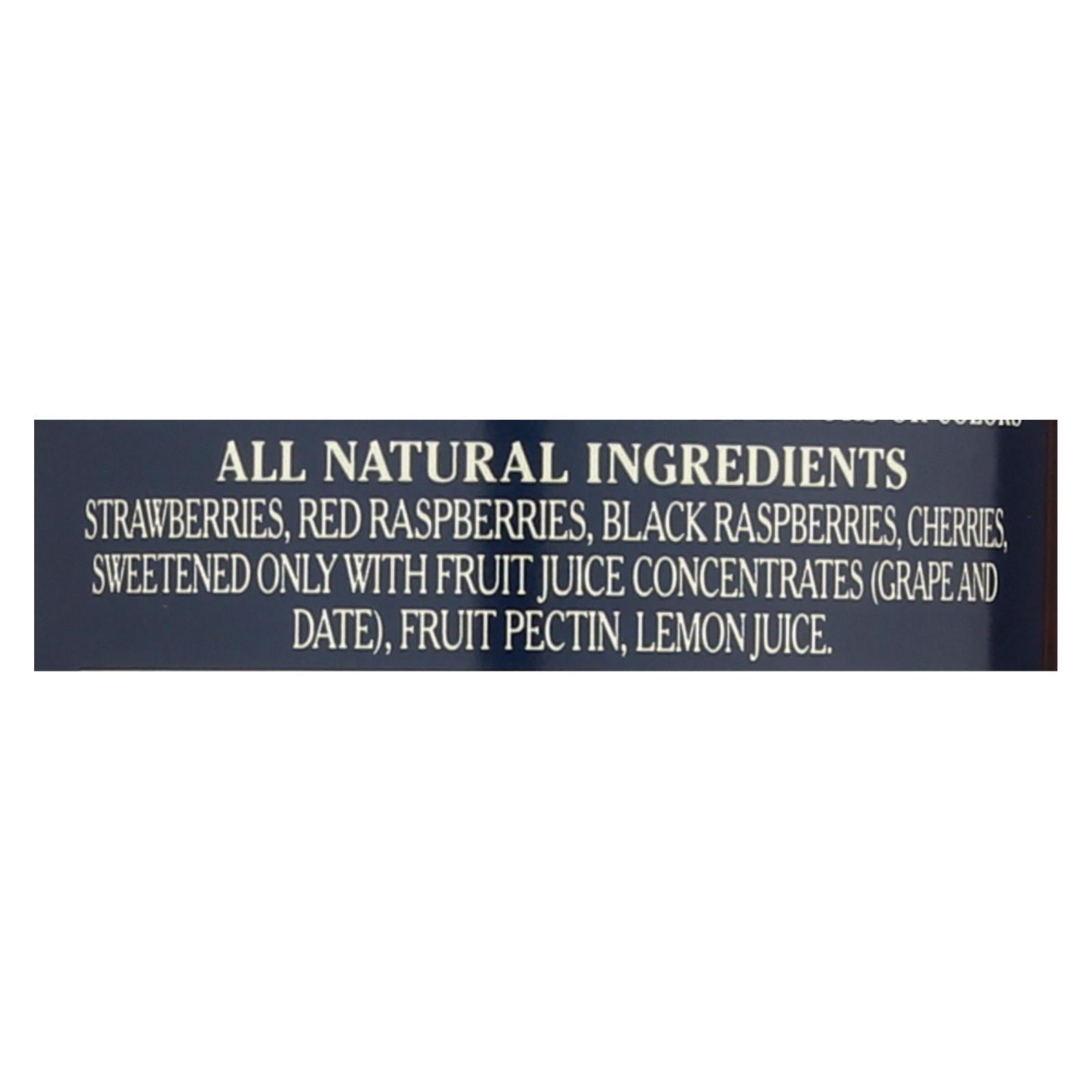 ingredients : fruit (strawberries, red raspberries, black raspberries, black cherries);fruit juice concentrates (grape and date);fruit pectin;lemon juice