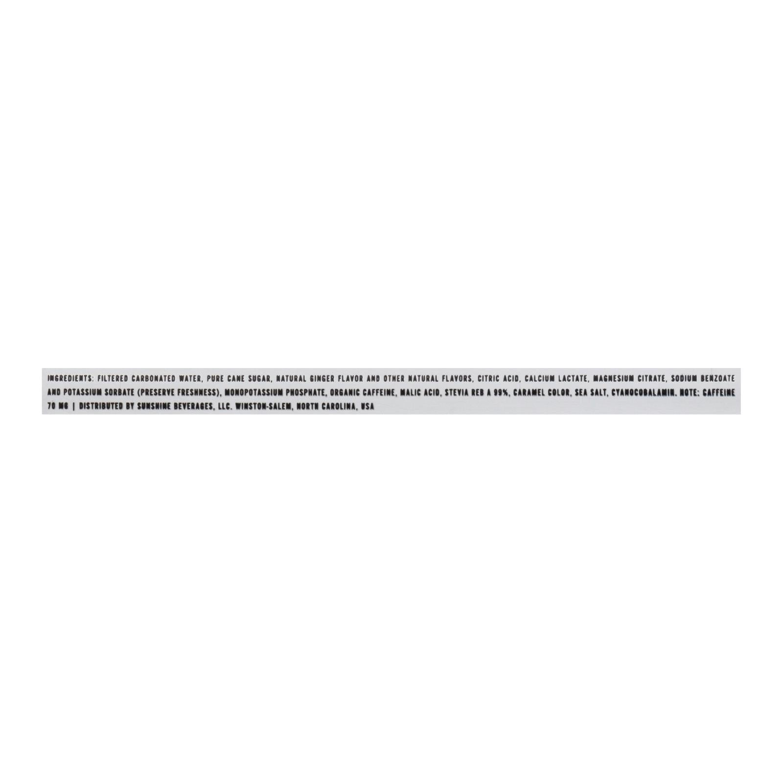 Made with real ginger. Flavored with other natural flavors. 60 calories per can. Contains 70 mg of natural caffeine. 70 mg of natural caffeine. Note: caffeine 70 mg. Vitamin b12 & electrolytes. A bubbly harmony of flavor, function & feeling. Naturally sweetened. Drinkthesunshine.com. Visit drinkthesunshine.com.