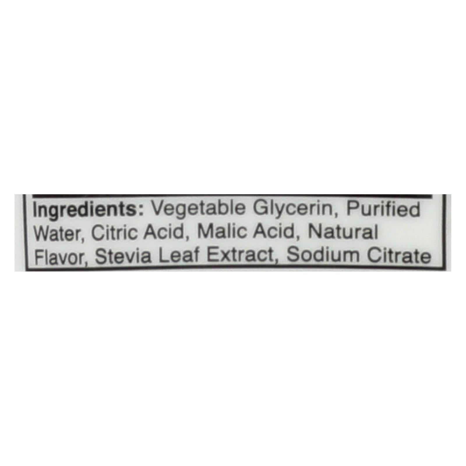 ingredients : vegetable glycerin;purified water;citric acid;malic acid;natural flavor;stevia leaf extract;sodium citrate