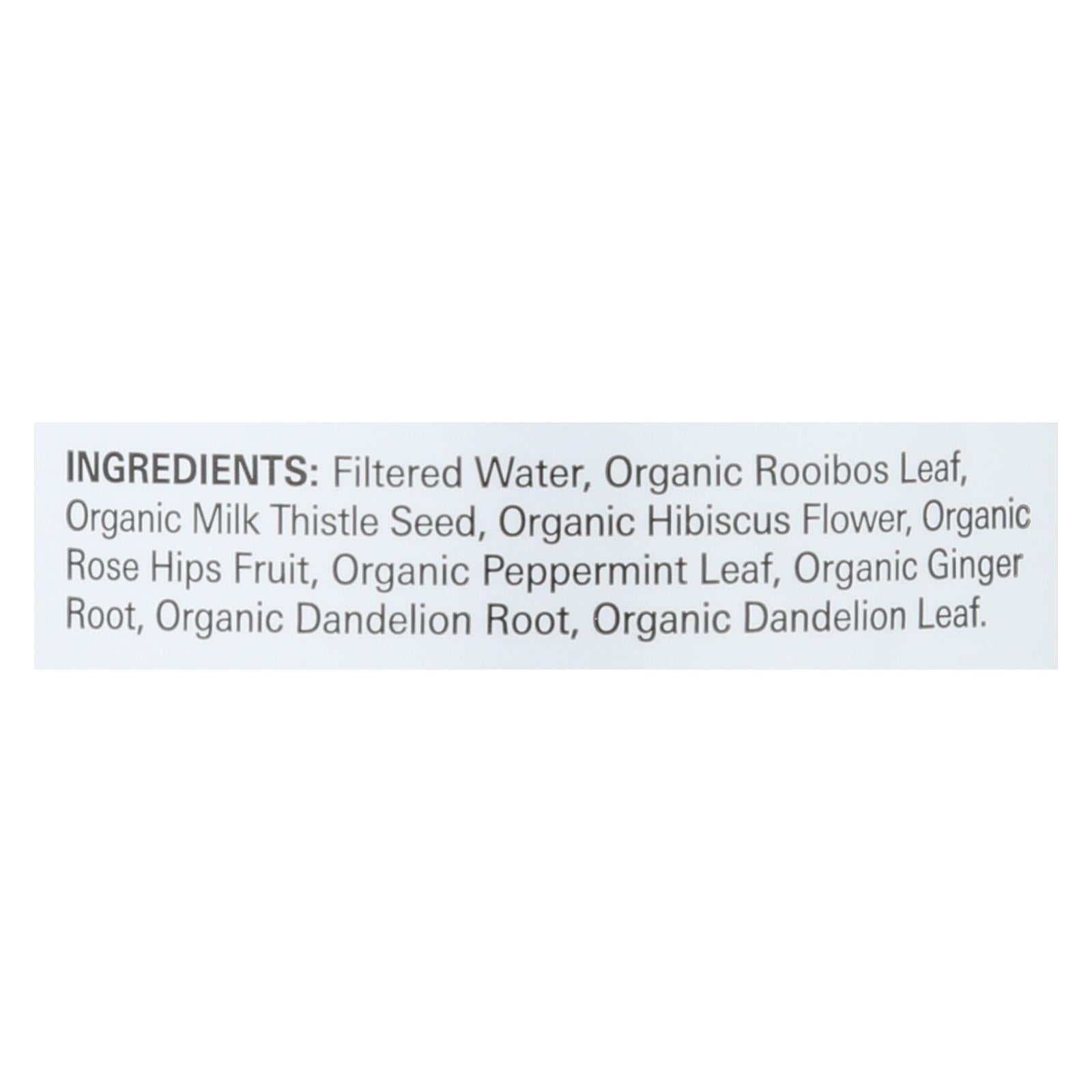 ingredients : filtered water;organic rooibos leaf;organic milk thistle seed;organic hibiscus flower;organic rose hips fruit;organic peppermint leaf;organic ginger root;organic dandelion root;organic dandelion leaf