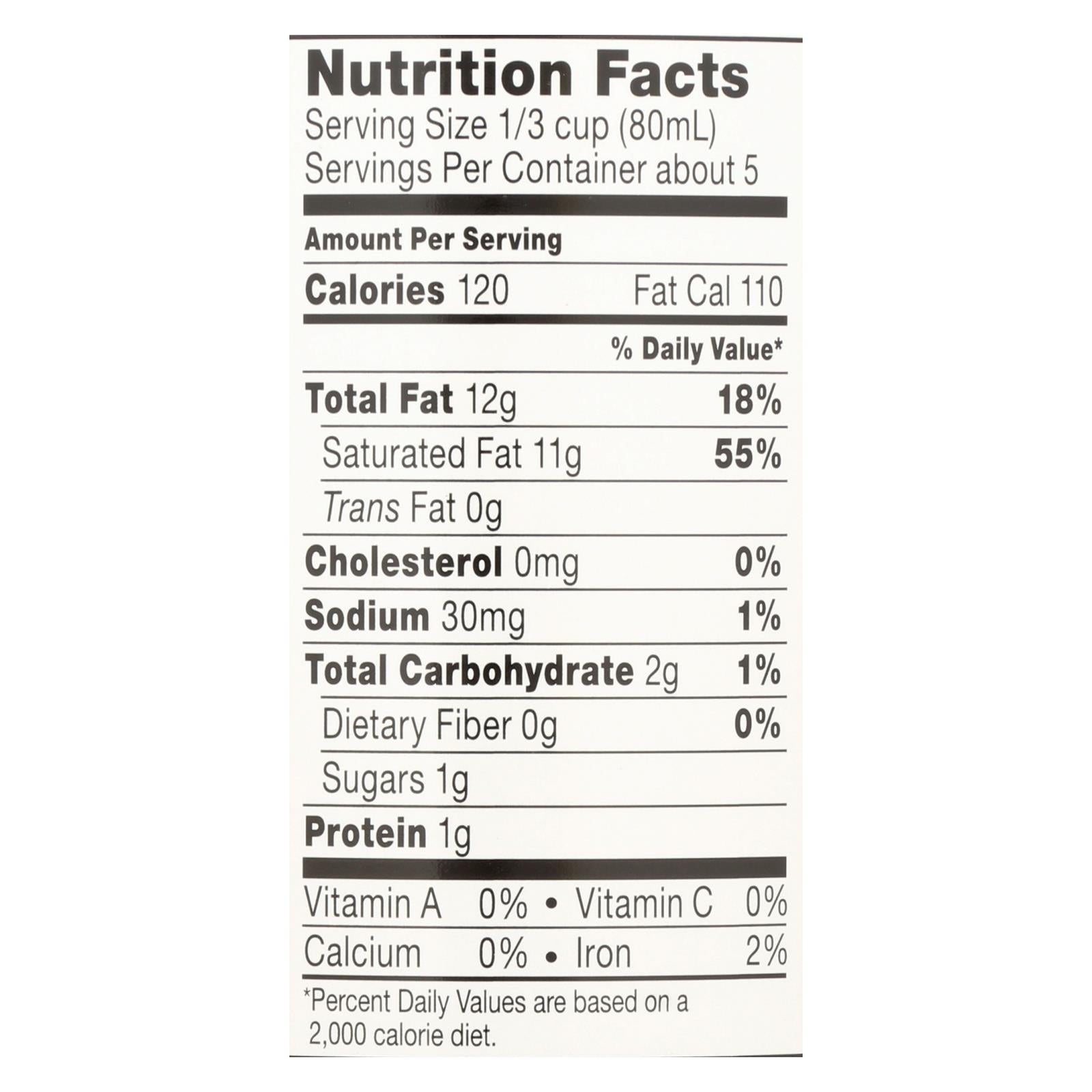 Thai kitchen pure coconut milk is made from organic coconut, water and guar gum and is made without chemical additives or preservatives. Each 1/3 c. Serving in the 13.66 fl. Oz. Can contains 120 calories, 1 g. Of sugar and 1 g. Of protein. Our pure coconut milk is gluten-free, unsweetened and vegan.