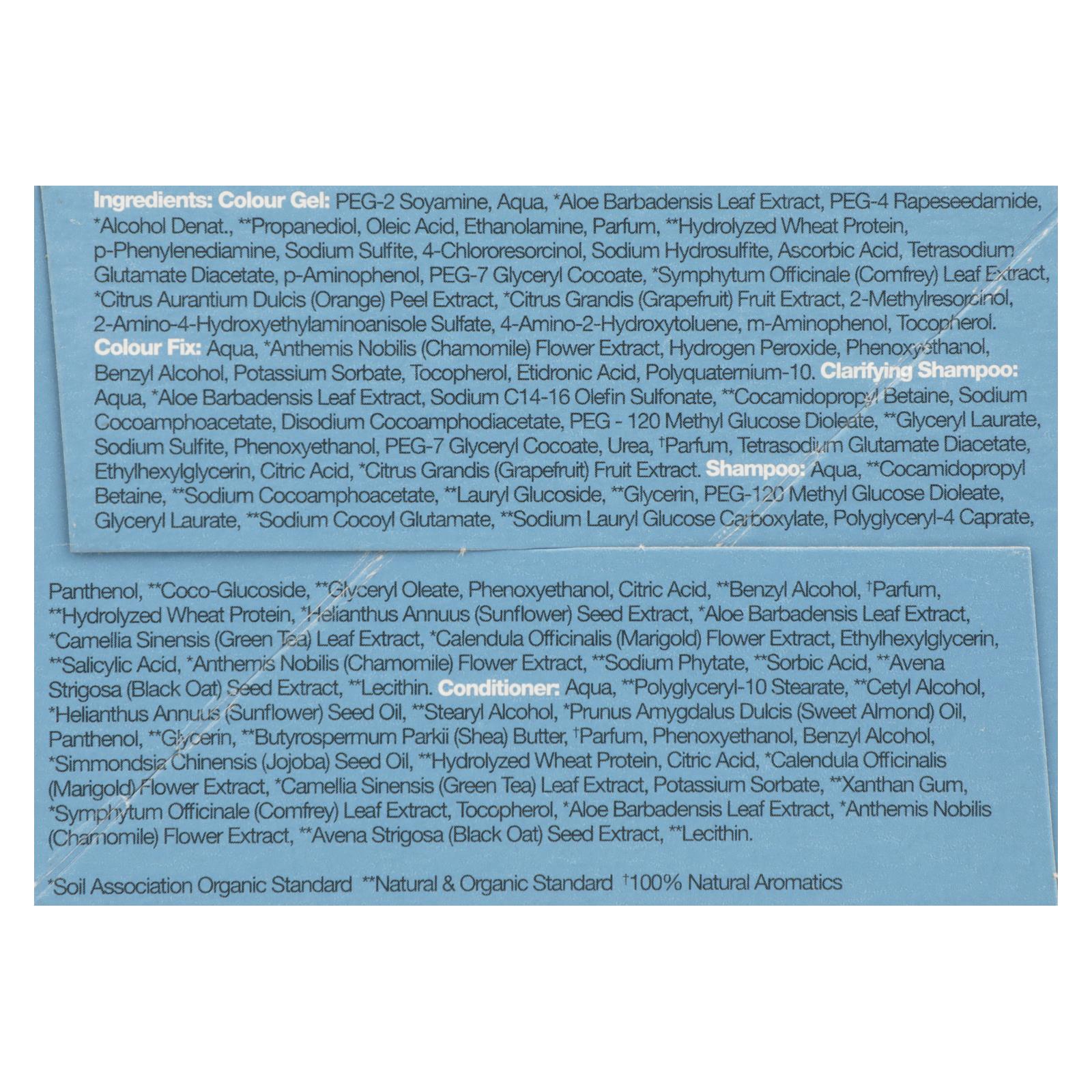 ingredients : colour gel: peg-2 soyamine;aqua;aloe barbadensis leaf extract;peg-4 rapeseedamide;alcohol denat;propanediol;oleic acid;ethanolamine;parfum;hydrolyzed wheat protein;p-phenylenediamine;sodium sulfite;4-chlororesorcinol;sodium hydrosulfite;ascorbic acid;tetrasodium glutamate diacetate;p-aminophenol;peg-7 glyceryl cocoate;symphytum officinale;comfrey;leaf extract;citrus aurantium dulcis;orange;peel extract;citrus grandis;grapefruit;fruit extract;2-methylresorcinol;2-amino-4-hydroxyethylaminoanisole