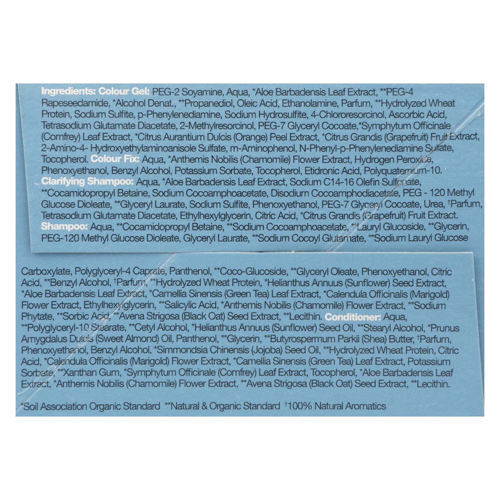 ingredients : colour gel: peg-2 soyamine;aqua;aloe barbadensis leaf extract;peg-4 rapeseedamide;alcohol denat;propanediol;oleic acid;ethanolamine;parfum;hydrolyzed wheat protein;sodium sulfite;p-phenylenediamine;sodium hydrosulfite;4-chlororesorcinol;ascorbic acid;tetrasodium glutamate diacetate;2-methylresorcinol;peg-7 glyceryl cocoate;symphytum officinale;comfrey;leaf extract;citrus aurantium dulcis;orange;peel extract;citrus grandis;grapefruit;fruit extract;2-amino-4- hydroxyethylaminoanisole sulfate;m-am