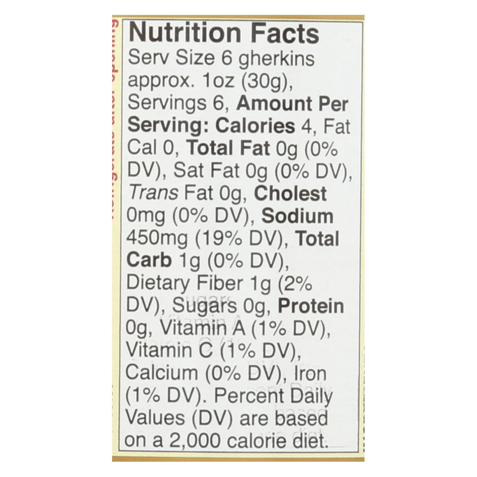 ingredients : gherkins;water;vinegar;onions;salt;spices;including mustard;flavoring. Possible traces of sulfites
