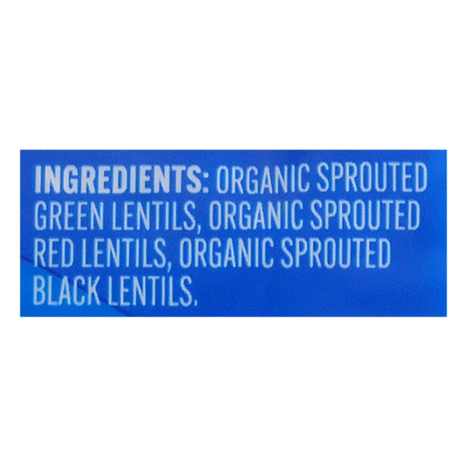 ingredients : organic sprouted green lentils;organic sprouted red lentils;organic sprouted black lentils