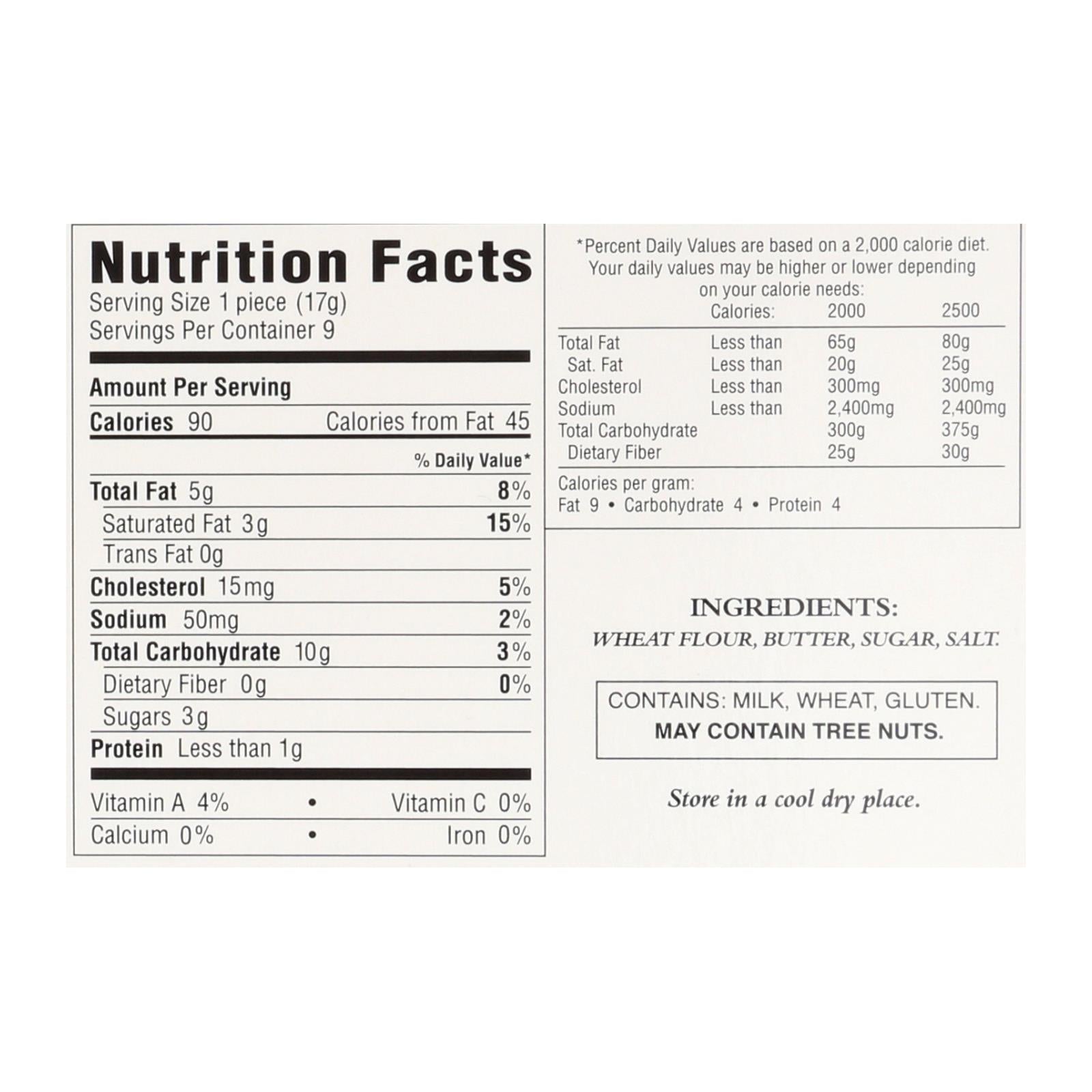 Walkers shortbread cookies are made using a traditional family recipe. Every 150 g. Package of walkers shortbread cookies is free of artificial flavors, colors and preservatives and is vegetarian friendly. Pure butter shortbread rounds are baked without using any trans fats and incorporate just four ingredients: flour, butter, sugar and salt. See nutrition facts panel for allergens.