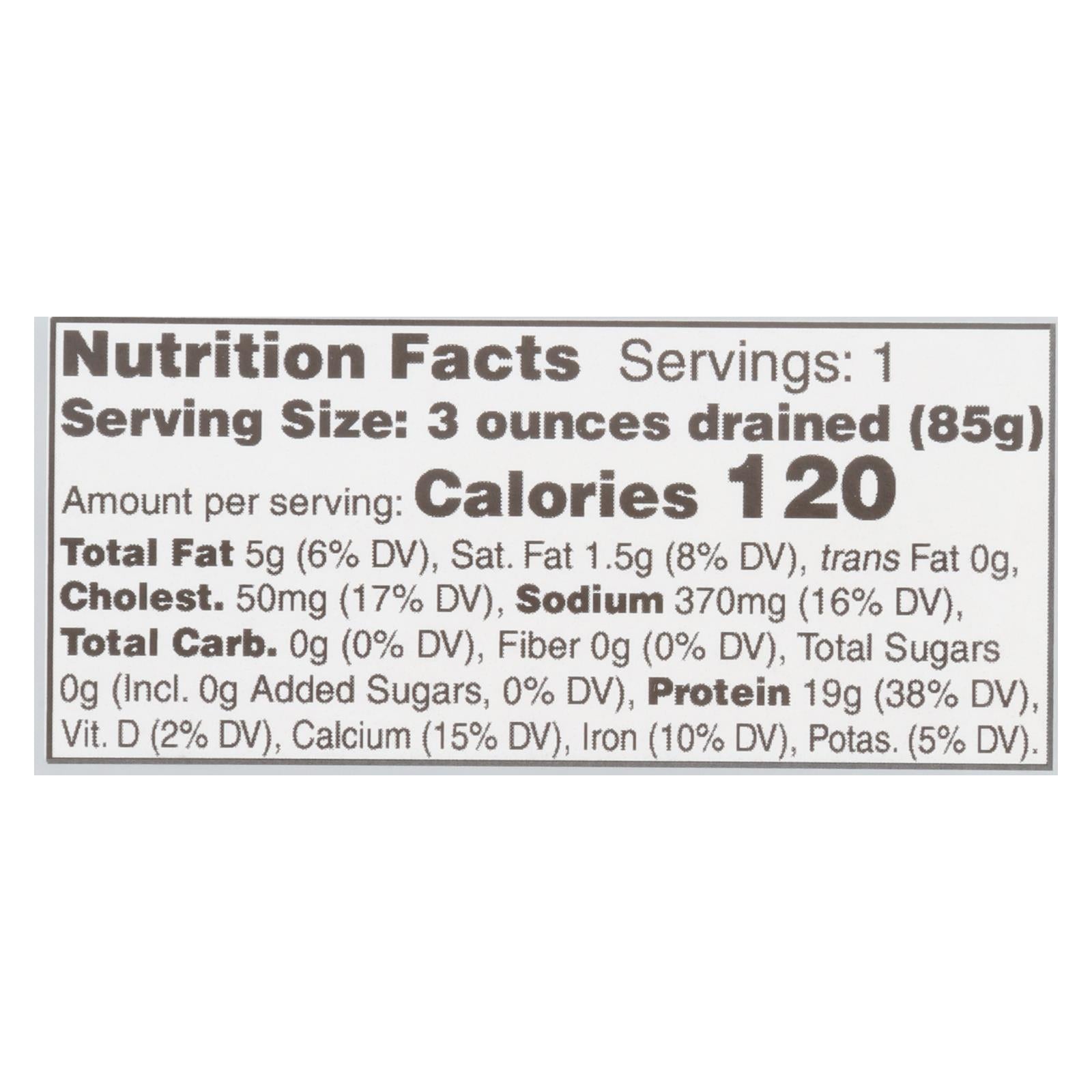 Wild planet wild white anchovies in water with sea salt are delicious any time. Sustainably caught, these delicate anchovies are packed fresh and are not brined for a delectable taste that's mild yet flavorful. Each serving of these anchovies in this 4.4 oz. Container has 120 calories, 19 g. Of protein, 15% of the daily value of calcium and no trans fat or sugars.