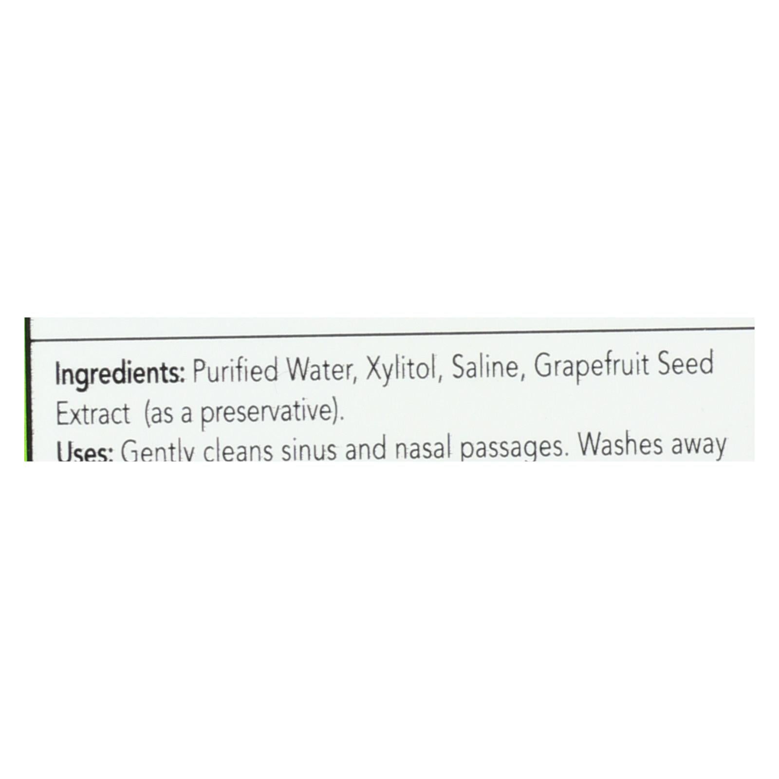 ingredients : purified water;xylitol;saline;grapefruit seed extract;as a preservative